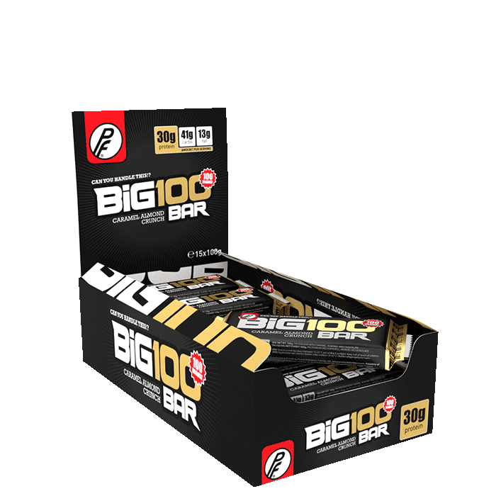 Big 100 Protein Bar er smekkfull av god smak med hele 30 gram protein og masse energi. Med Big 100 Protein Bar satte Proteinfabrikken standarden for hvordan en proteinbar skal se ut og hvordan den skal smake.