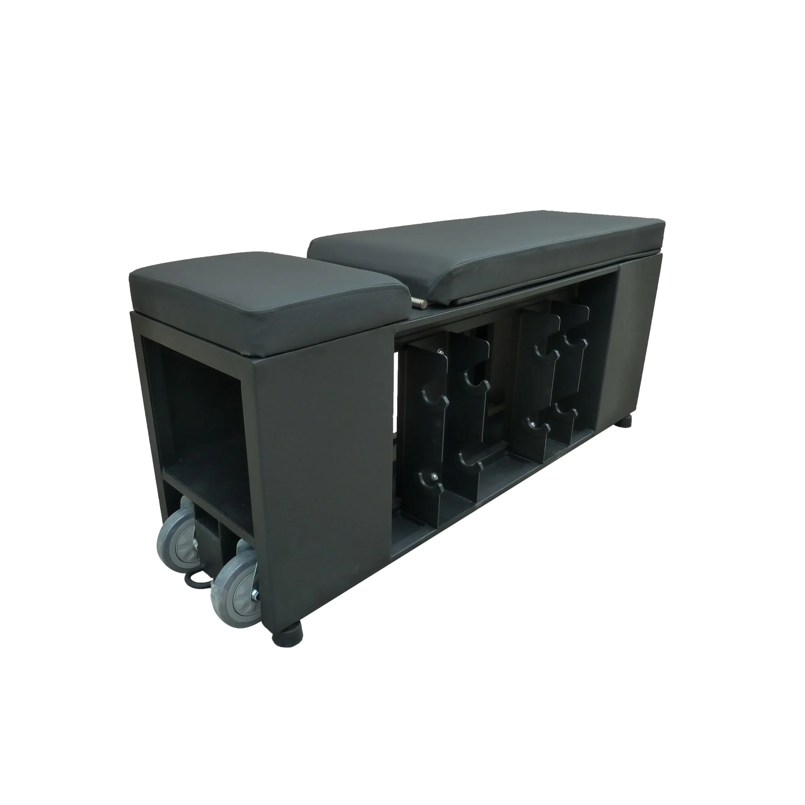 LMX. HIIT Bench er en funktionel træningsbænk, der udover at fungere som træningsbænk også har plads til opbevaring af træningsudstyr, så du har alt, hvad du skal bruge til din træning lige ved hånden.