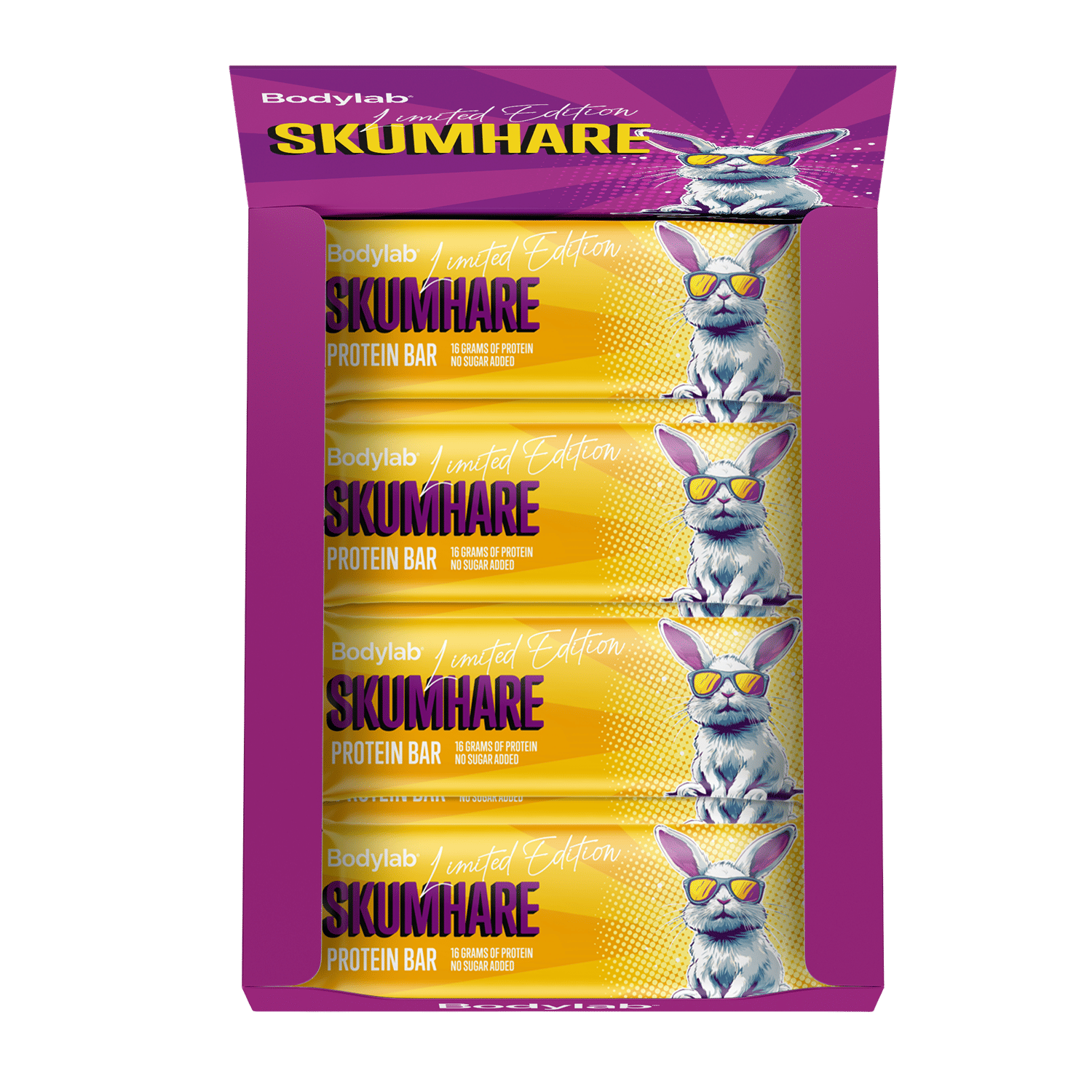 Skumhare Protein Bar har en blød og luftig kerne med 16 gram protein og 0 gram tilsat sukker.