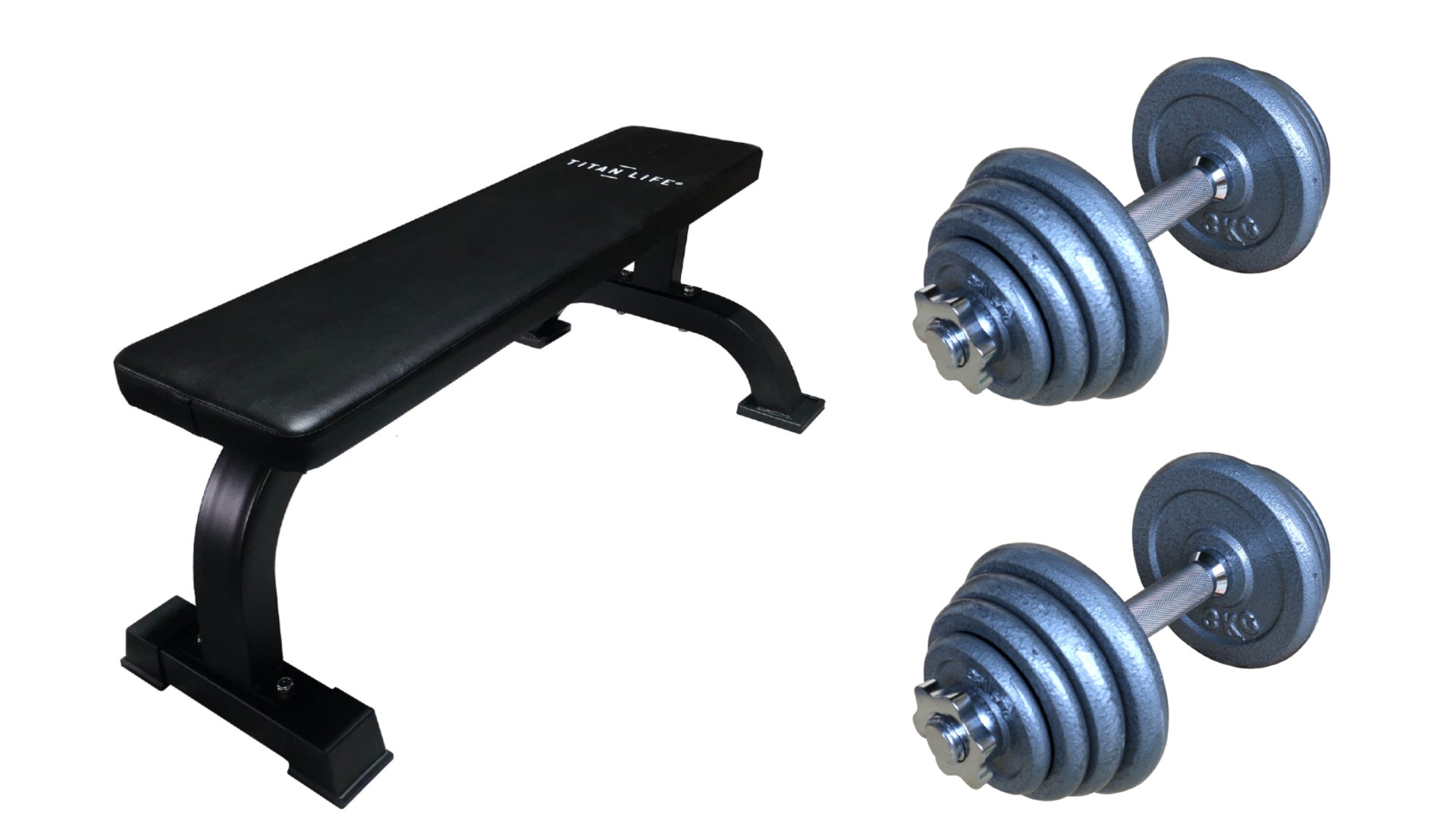 TITAN LIFE Bench Flat Basic m/håndvægte – Træningsbænk & 2 håndvægte á 15 kg