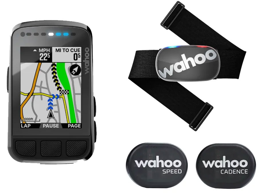 Bundle bestående af Wahoo Elemnt Bolt V2 computer, Wahoo Tickr Gen 2 pulsbælte, Wahoo RPM kadence- og speedsensor